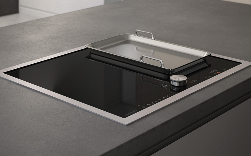 フリーゾーン:ゾーン内であればクックウェアのサイズ限定がなくなり、且つお鍋の移動が可能なので、だれもが焼く、炒める、煮る、茹でるをより自由に出来ます。また、ボタン1つで2つの調理ゾーンを繋げ、大きなフライパンはもちろん、グリドルプレートやテッパンでバーベキューや鉄板焼が楽しめます。