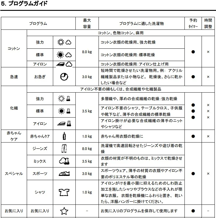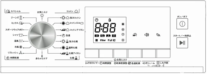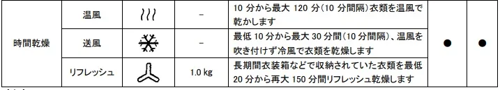 <オプション>予約タイマー、時間短縮、乾燥レベル調節、しわ防止、チャイルドロック、お知らせブザー